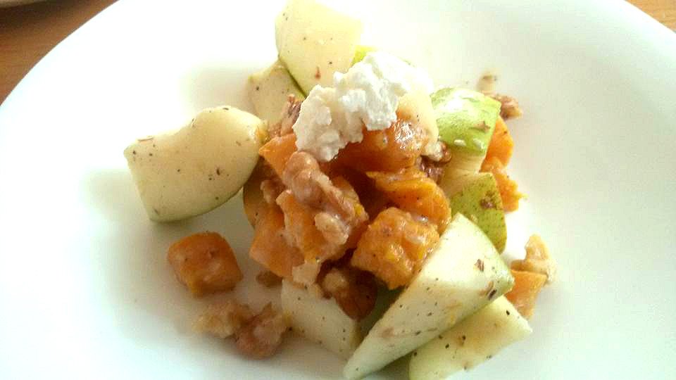walnut salad prettily presented and topped with sliced feta cheese is substantial
