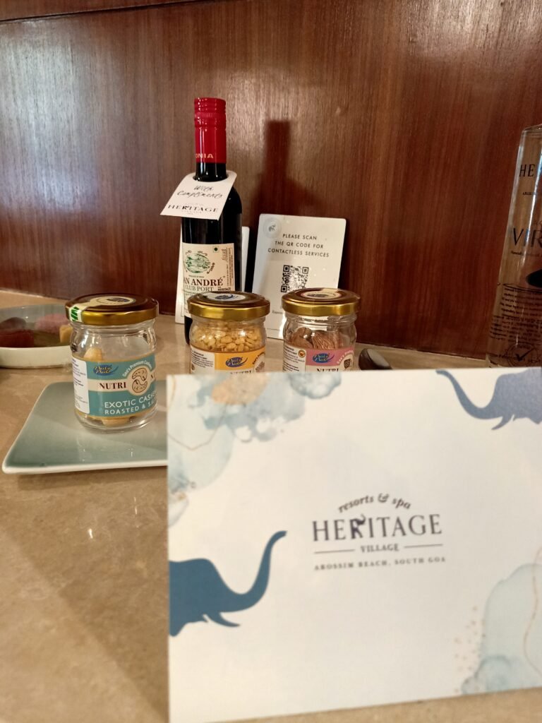The room all painted in soft hues complimented well with bright linen. Our room felt more welcoming with a basket of fruits, a wine bottle and a handwritten note by the GM only to make our presence felt apprecaiated. These are the subtle yet noticeable things Heritage takes care of. A customized nameplate with our names made it feel like “Home”. Outside, the room has a beautiful garden with a set of lounge chairs.