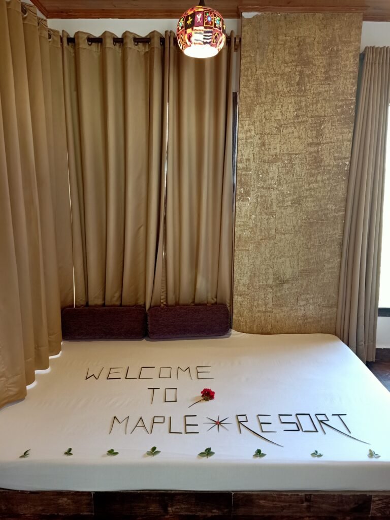 Food at Maple is indeed worth trying. We loved their Indian specialties and would highly recommend their Himachali thaali. Their breakfast options are humongous, and we enjoyed all meals at the resort. Our finest experience was the breakfast in the open, with fresh air and the sun shining on us.