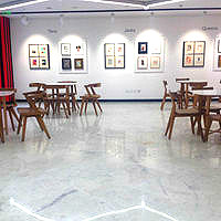 restaurant. The interior leaves no doubt that this is an Art Café – the walls are literally smothered with