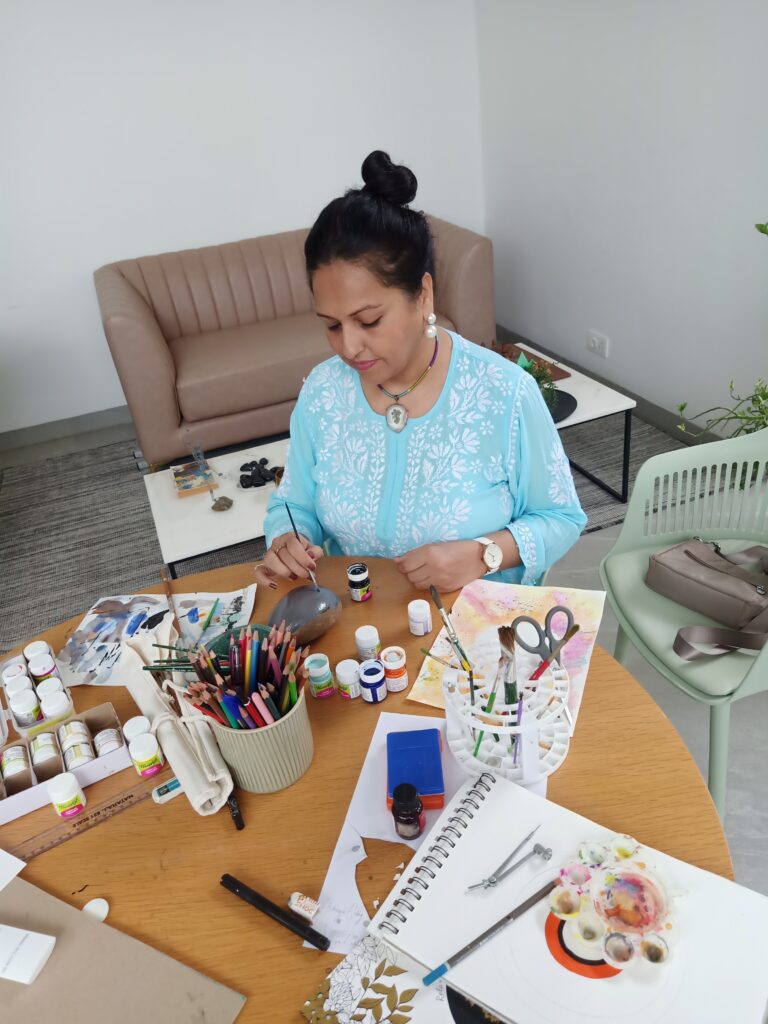 The retreat wasn’t only about therapies and meals. It was about rediscovering myself in stillness. I journaled by the pond, walked barefoot on dewy grass at sunrise, and joined workshops on mindfulness and breathwork. The best was the art therapy – where I played with colors & expressed my emotions on paper & stone – it was transformation & shift in energy that I experienced.